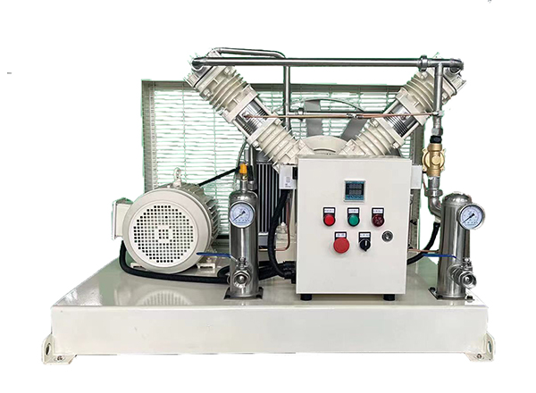 全無油設(shè)計(jì),導(dǎo)向環(huán)、活塞環(huán)、活塞桿填料均采用自潤滑材料,無油潤滑。軸承部件采用耐高溫脂潤滑,不與壓縮介質(zhì)接觸,避免壓縮過程中對氣體的污染,保證氣體純度。根據(jù)實(shí)際用氣情況,壓縮機(jī)分為單級或多級壓縮;結(jié)構(gòu)形式分為單缸、雙缸、三缸、四缸及組合式多缸結(jié)構(gòu);冷卻方式分為風(fēng)冷和水冷。